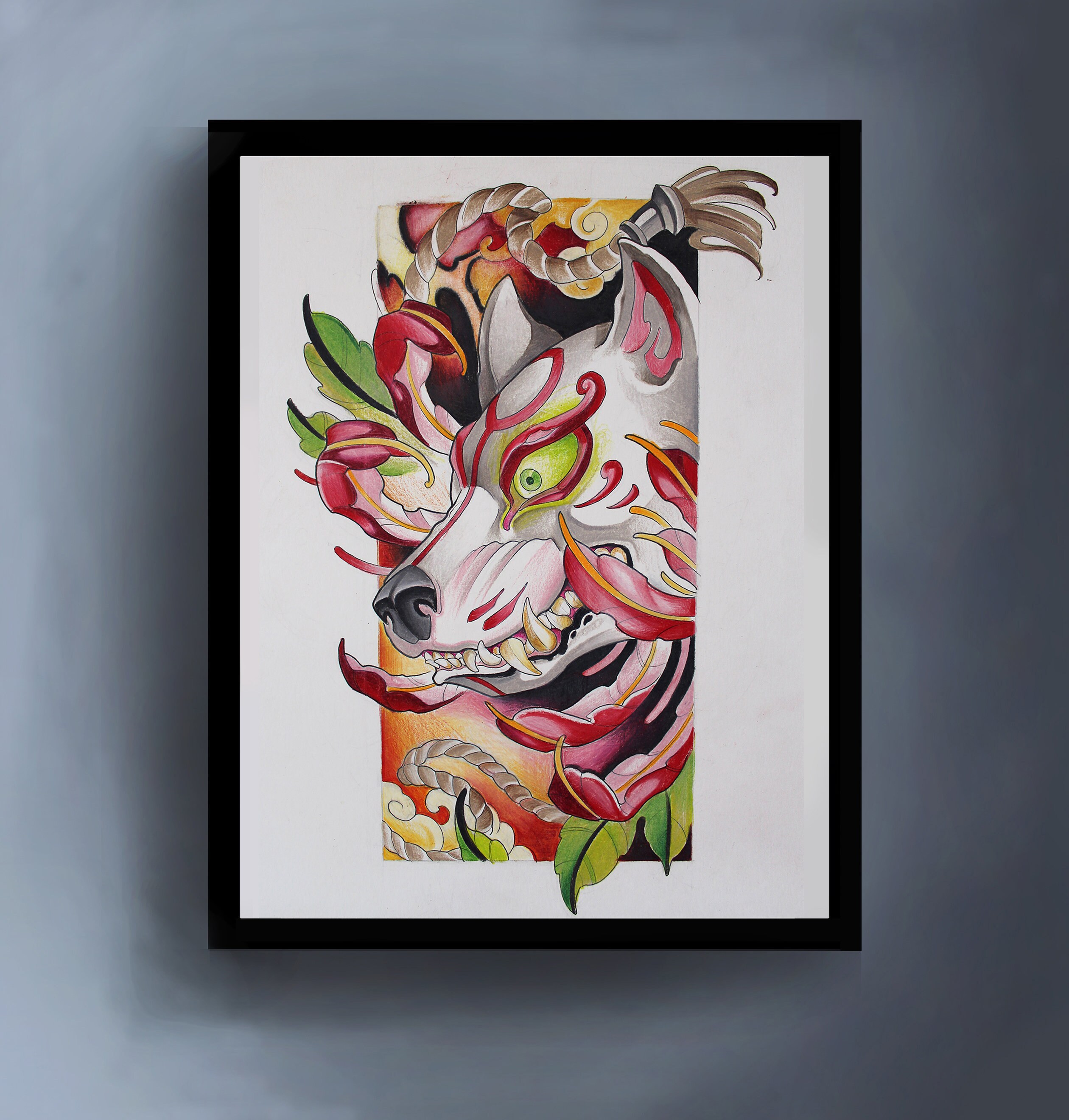Kitsune Yokai Tattoo Flash Sheet Tattoo Shop Decor Art Etsy Uk